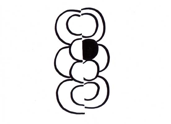 Papier, 80g/m2, Edding scharz Aufgabenstellung: 1. Die Fläche eines Blattes in der Größe A5 zeichnerisch zu definieren. 2. Ein in der Mitte gefaltetes A5-Blatt. Aufgabe ist es, die Mitte zu umfassen. Die Annäherung an die Mitte erfolgt von beiden Hälften, ohne die andere Seite zu sehen, getrennt von einander. Zuletzt wird das Blatt wieder aufgefaltet. < .... > |